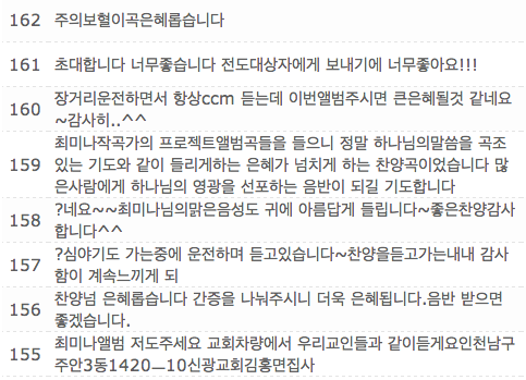 특히 ‘초대합니다’라는 곡은 구원받았지만 하나님을 아직 모르는 크리스천들에 대한 안타까움으로 시작된 곡이다. “초대하신 하나님, 한 영혼이 천하보다 귀하기 때문에 개인적으로 한사람 한사람 불러주시는 하나님. 그리고 오래 참으시면서 기다리시는 하나님, 한 명이라도 멸망치 않고 모두 구원받기 원하시는 하나님, 당신의 마음을 오늘도 노크하시는 하나님. 이 곡을 통해 하나님의 마음을 전하시고 듣는 분들 모두 하나님의 초대에 수락하고 예수님을 영접하고 예수님과 친밀한 식탁의 교제를 나누길 소원해요.”